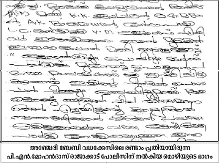 1982 നവംബര് 13ന് നടന്ന കൊലപാതകത്തില് അന്ന് രജിസ്റ്റര്ചെയ്ത കേസിലെ ഒന്നാംപ്രതി പനയ്ക്കല് കുഞ്ഞൂഞ്ഞ് എന്നുവിളിക്കുന്ന കേശവന്തന്നെയാണ് കുറ്റക്കാരനെന്നാണ് തന്റെ അറിവെന്നും മോഹന്ദാസ് പറയുന്നു. അദ്ദേഹം ഇപ്പോള് ജീവിച്ചിരിപ്പില്ല.